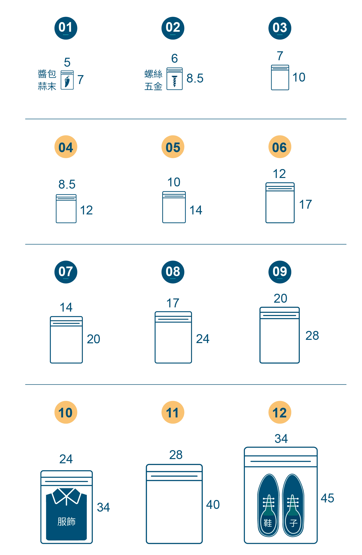 適用於食品、零食、蜜餞、果乾、五金、電子耗材、各式配件...等包裝。