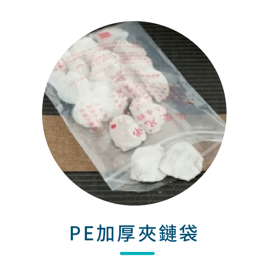 PE材質的夾鏈袋,為可冷凍材質,袋身較軟,許多冷凍水餃店家皆使用此材質做宅配運送。與市場公規紅線夾鏈袋同材質,但裝冷凍水餃厚度建議為0.08mm,較不易刺破。